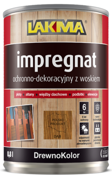 - woski zawarte w impregnacie zabezpieczają drewno przed zwilżaniem wodą i wnikaniem wilgoci,
